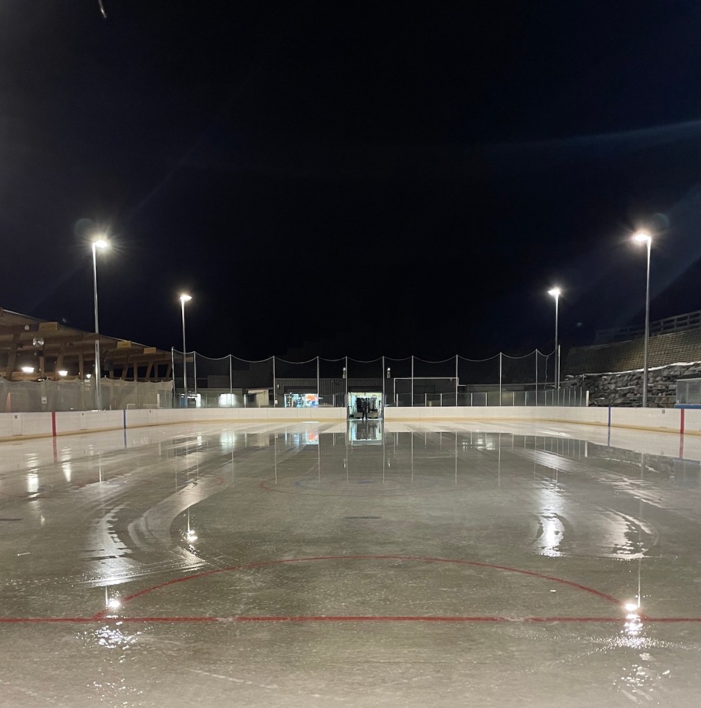 It’s 6am and about 0ºC when we’re getting dressed for our first game. Needless to say, despite being super excited to play hockey outdoors… we’re tired zzZZ. The place is awesome though! The rink is located at the top of this hill in the same complex as the Lake Tekapo Hot Springs (yes, we will be going there!), it is still dark outside but an outdoor fireplace is roaring and keeping us warm before puck drop.